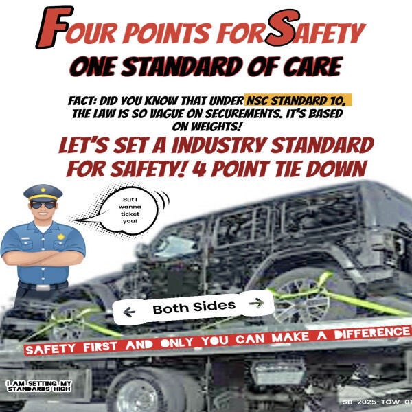 Four Points for Safety-Tow Truck Securement Bulletin (SB-2025-Tow-01).