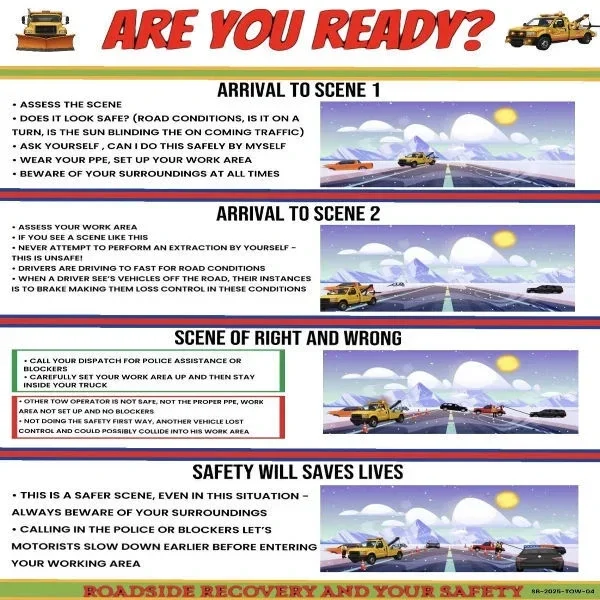 Roadside Recovery & Tow Operator Safety Poster — “Are You Ready?” SB-2025-Tow-04. https://safetybuzz.gumroad.com/l/CTA-SB-2025-TOW-04