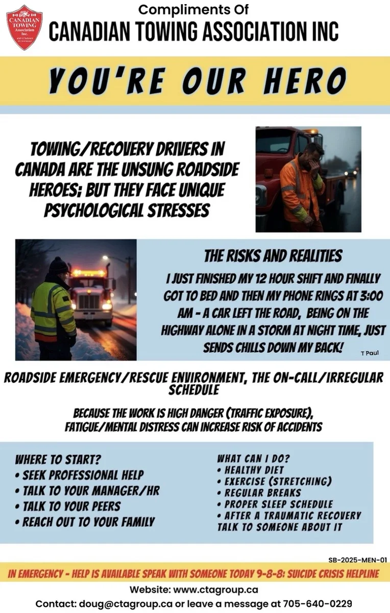 Tow Truck Driver Mental Health & Safety Bulletin — “You’re Our Hero” SB-2025-MEN-01 (With Free Employer Knowledge PDF)